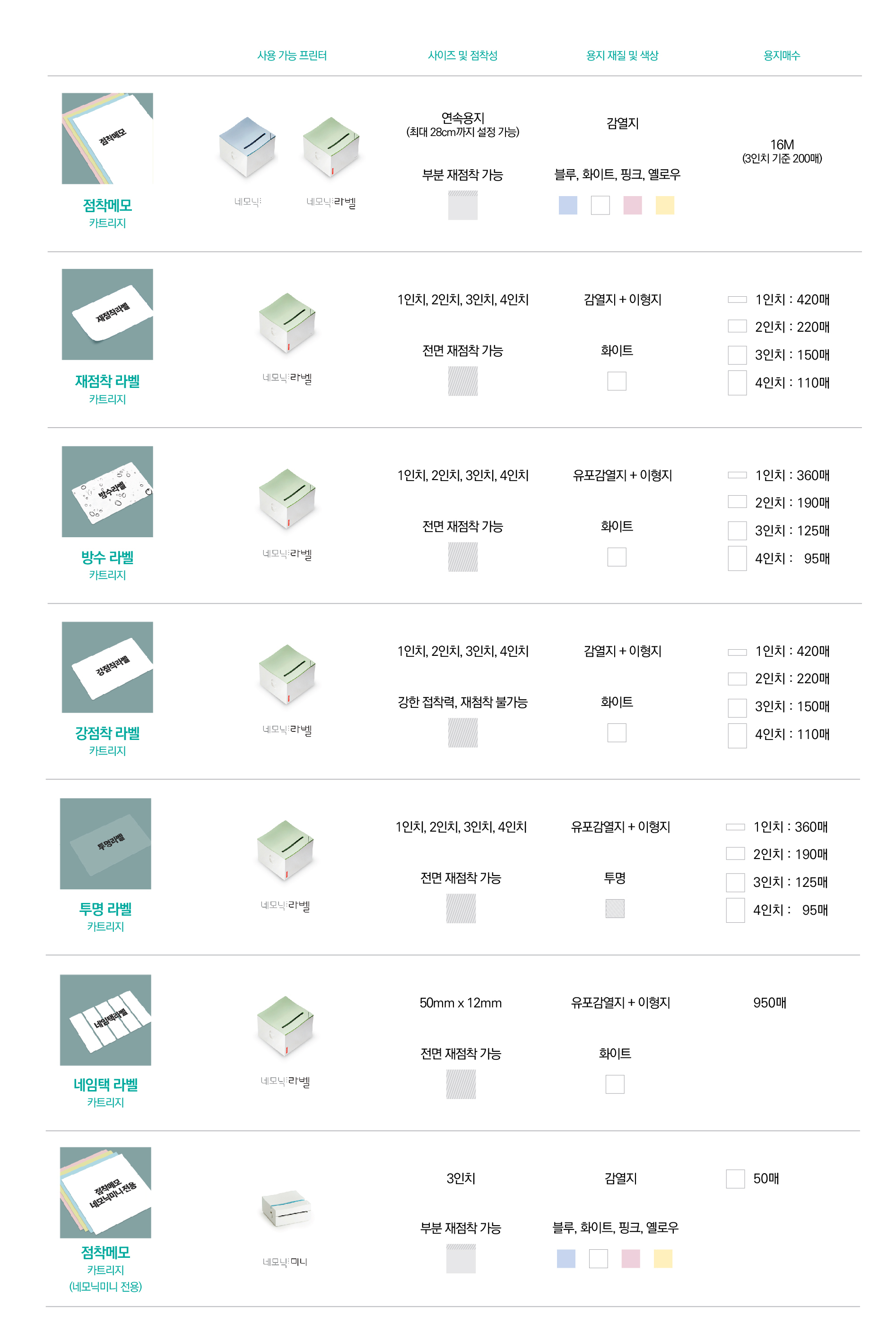 네모닉라벨 전용 재점착라벨 카트리지